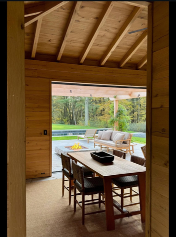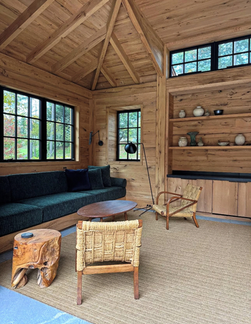 For the poolhouse at this Connecticut country retreat, Sydney Maag designed a cohesive indoor–outdoor living space inspired by the surrounding bucolic landscape. Working closely with the architect and landscape designer, Sydney ensured that the poolhouse had its own personality and character while aligning with the home and grounds.